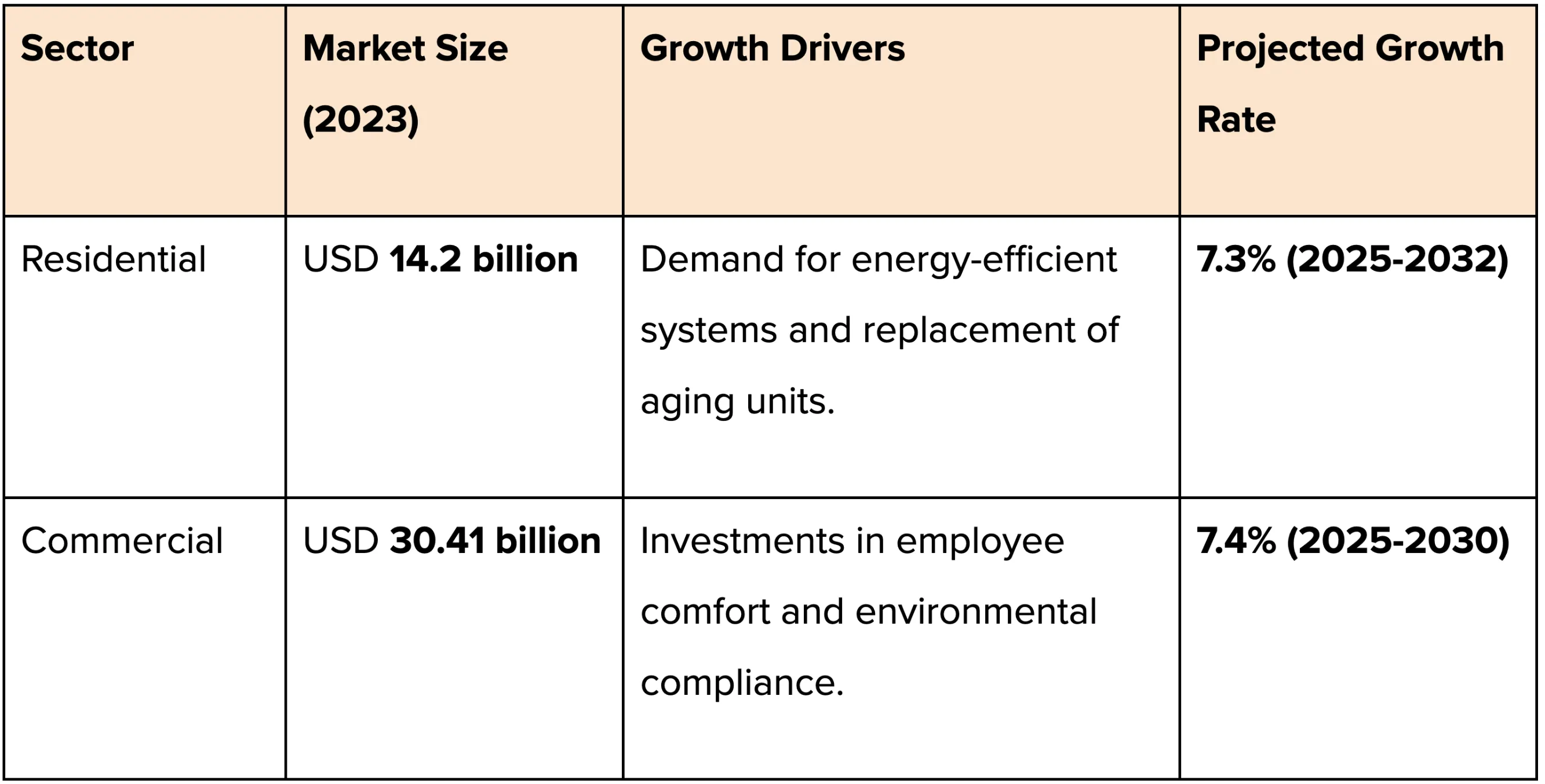 Both sectors are integral to the HVAC industry's expansion, with residential demand slightly outpacing commercial growth due to ongoing housing developments and consumer interest in energy-efficient home systems.